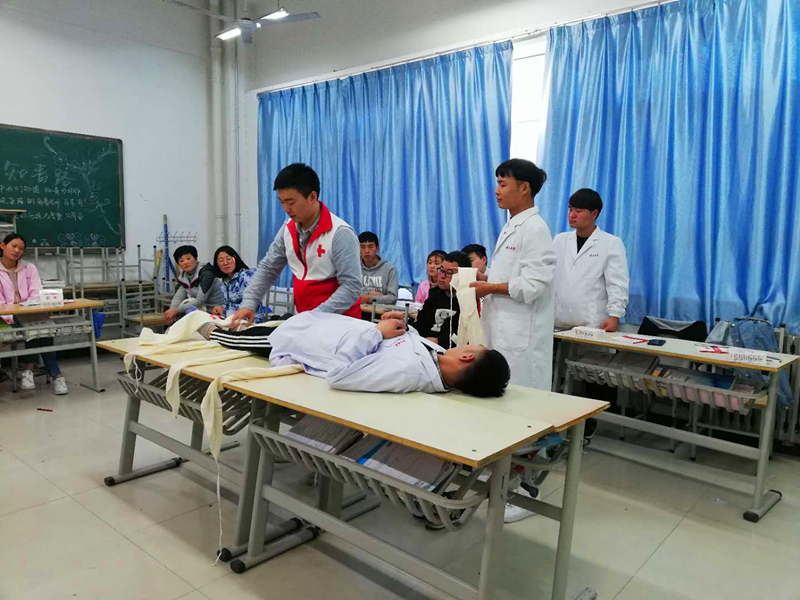 市红十字会精心选派了赵攀攀老师参与授课。课堂上,赵老师通过课堂讲授、情景模拟、角色扮演、实操练习的方法向学员们传授了心肺复苏、创伤包扎等自救互救的理论知识,并手把手的传授操作技能。尽管很多在场老师已取了副教授甚至教授资格,但现场依然学得非常认真,不少师生表示开展这样的培训非常有意义,大有收获。