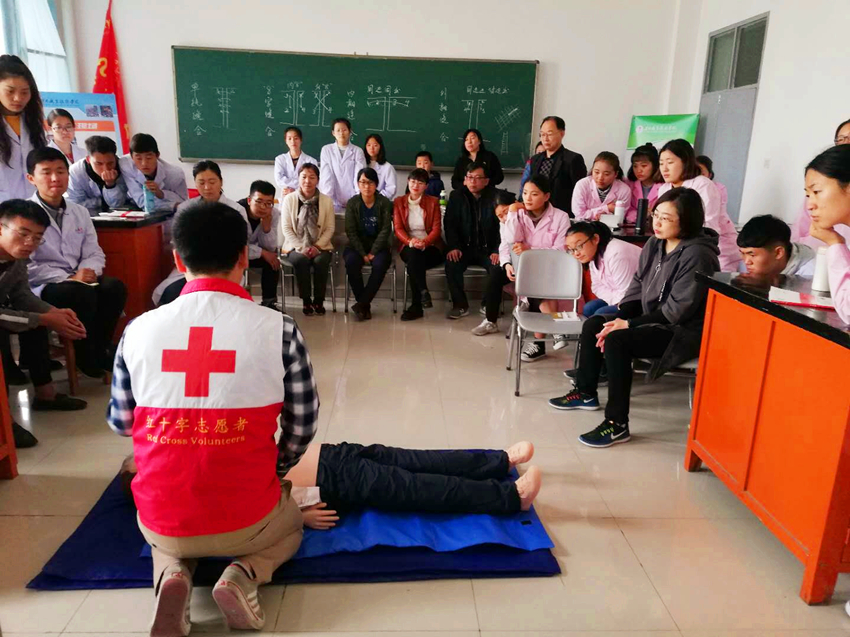 今年10月起,beat365中文唯一官网特邀渭南市红十字协会为beat365师生开展了4期应急救护培训班,beat365中文唯一官网党总支副书记吴亚飞、医学院副院长刘丽宁、林寓淞等120多名师生参加了培训,培训为期4天,在考核通过后颁发了陕西省红十字会统一印制的《红十字救护员证》。