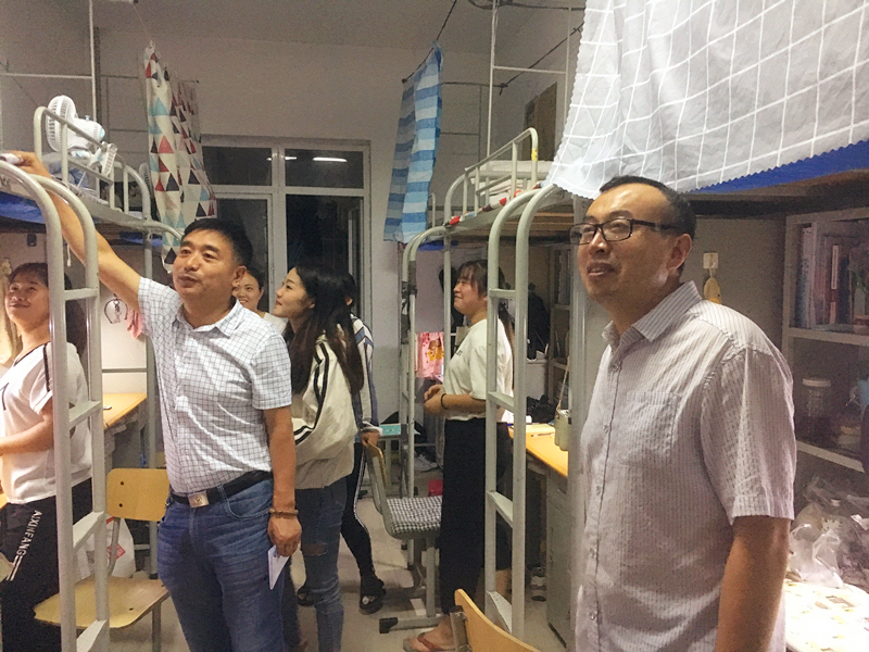 罗峰处长、我院院长张文信检查学生宿舍安全