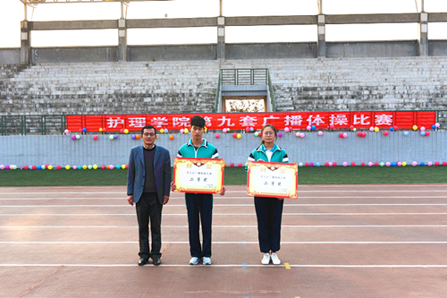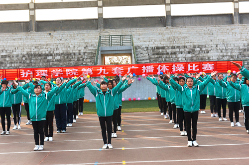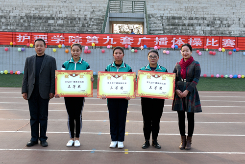 辅导员崔麦玲代表评委宣读了评分标准,对比赛评分提出了公开、公平、公正的要求。参赛同学们服装统一,步伐整齐,口号嘹亮,动作规范有力,他们举手、抬足、转身、跳跃都洋溢着青春朝气,每一个动作都充满着自信。评委们严格认真地从服装、进退场、精神面貌、广播操动作完成情况等方面进行了全面评分。经过紧张激烈的比赛:护理高职1709班夺得第一名,护理高职1702班和护理五高1701班斩获第二名,护理高职1707班、护理高职1712班、护理五高1706班荣获第三名。