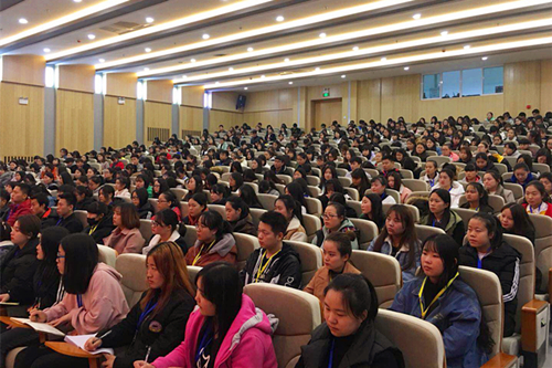 学生认真听取培训内容