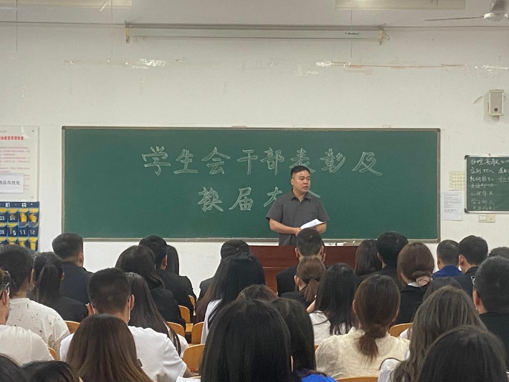 会上,学生会主席车鑫同学对2020-2021学年工作做总结报告,对其这一年担任职务中所获得的工作经验进行分享,介绍了学生会结构,宣读了学生会各部门工作职责,对新一届学生干部寄予希望。苏建军宣读了我院新一届学生会干部名单,为新任学生干部颁发了聘书,聘书代表了对他们工作的认可与肯定,也代表了他们的明天会更加辉煌!学生会副主席东旭博作为学生会新一届副主席上台发表了工作展望,感谢老师和上一届学生干部的栽培与指导,讲述自己的工作计划,向大家表达了决心。相信新一届的学生干部定会用汗水铸就荣耀,以实干笃定前行!李博要求学生会干部严于律己,努力学习,不断提高自身科学文化素养和道德修养,进一步发挥学生干部模范带头的作用,全心全意为同学服务。