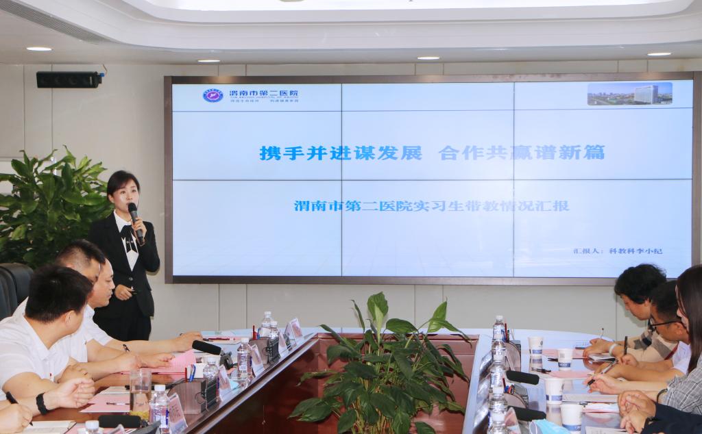 徐兆宏代表医院致欢迎辞,他对医院基本概况、主要业务、党建工作、近年来所获得荣誉和未来发展计划做详细介绍。科教科长李小纪详细汇报了实习学生带教情况。副院长步延芳详细介绍了近三年来beat365学生留院情况以及一线医生、护师在渭职授课情况。院长何师民表示beat365中文唯一官网有着悠久的历史,对学校在医药卫生类人才培养的成绩做出了肯定,详细介绍了科室建设、发展规划和医院在科研和医资培训方面存在的问题,期望能够通过更广泛的合作得到解决和提升。