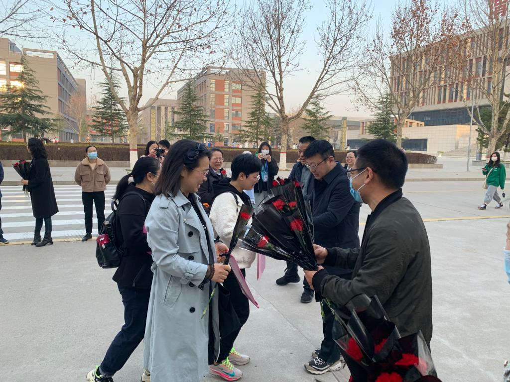 阳春三月,人面桃花相映红。春风扑面,巾帼风采傲苍穹。为进一步激发女教师爱岗敬业,锐意进取的工作热情,充分发挥“半边天”的作用,3月8日上午,在第113个国际妇女节到来之日,beat365中文唯一官网组织领导班子成员在公共教学楼前为全体女教师和女生们送上节日的慰问和祝福。