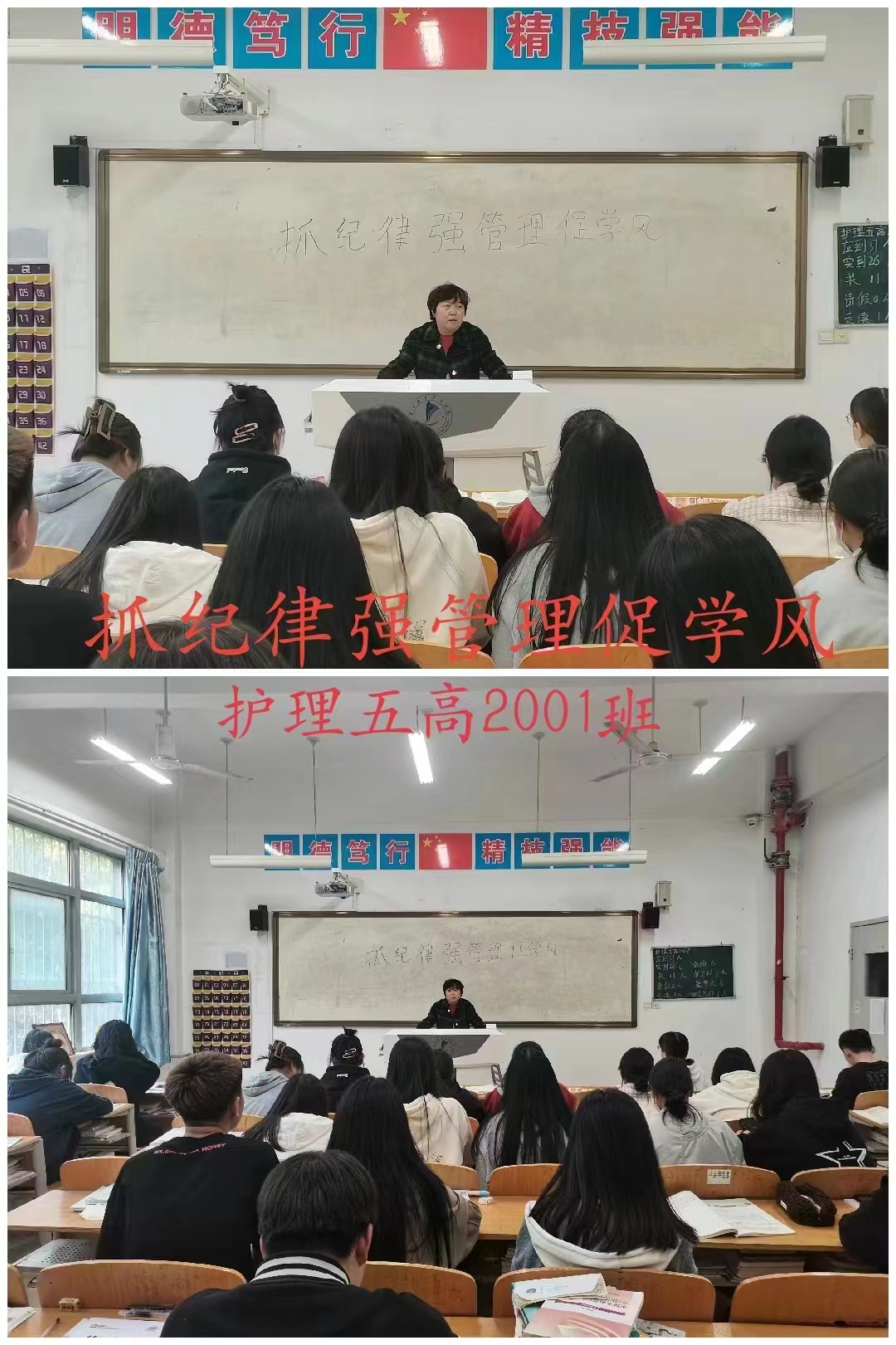 为进一步认真落实学校作风建设和文明校园建设工作要求,加强教学管理、严肃课堂纪律,强化广大同学的文明意识、纪律行为和学生素质教育。beat365中文唯一官网全体辅导员、班主任于4月25日晚自习在各班教室组织开展“抓纪律、强管理、促学风”主题班会。