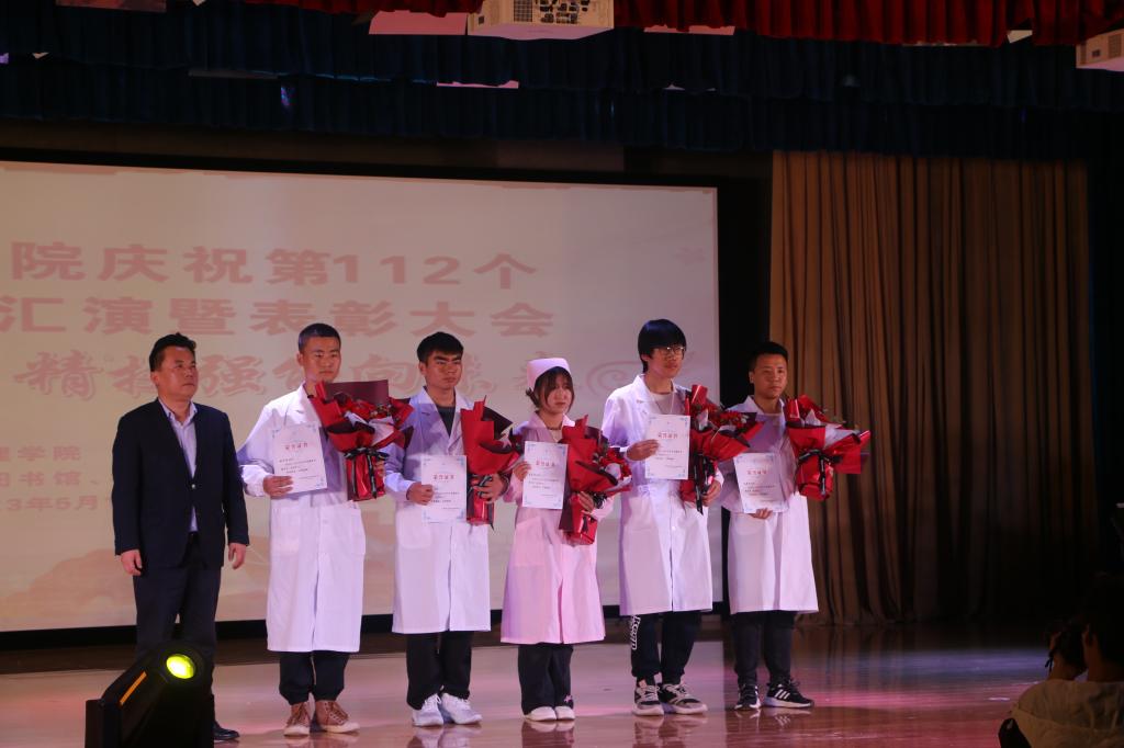 为了激励广大护理学子传承南丁格尔精神,展示护理青年奋发向上、不断进取的风貌,学院围绕德智体美劳五个方面选树典型,对评选出的姚欣怡等11位优秀实习生和在2023年陕西省高等职业院校技能大赛护理技能赛项、健康养老照护赛项、老年护理与保健赛项中取得佳绩的翟雨蒙等9名学生进行了表彰,授予“最美护生”称号。吴运胜宣读了《beat365中文唯一官网关于表彰“最美护生”的决定》,靳华锋、杨宇清、张国栋等学校领导为获奖学生颁发了荣誉证书并献花,对她们取得的成绩表示祝贺,希望她们珍惜荣誉、再接再厉、再创佳绩。