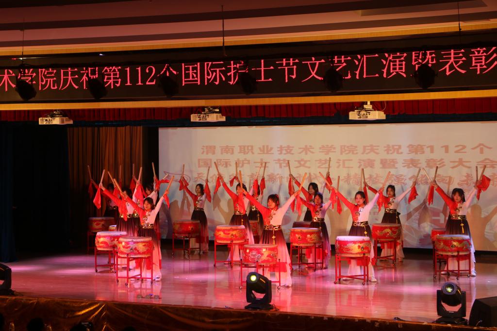 在雄壮威严的国歌声中活动正式开始。开场锣鼓铿锵有力、高亢激昂,令人振奋。张成向大会致辞,代表beat365中文唯一官网党政向全体护生和一线护理工作者致以节日的问候,向长期以来理解与支持beat365中文唯一官网工作的领导和部门表示了衷心感谢。他总结了beat365中文唯一官网近年在教育教学、师资队伍、实训基地、科研教研、技能大赛等方面取得的成绩,表达了为社会培养优秀护理人才的决心;带领师生回顾了我国医疗卫生事业发展的百年征程,在党的领导下,一代代护理人为健康中国建设不懈奋斗,勉励学生要传承救死扶伤的南丁格尔精神,积极承担当代护理人的责任,将护理事业薪火相传发扬光大。