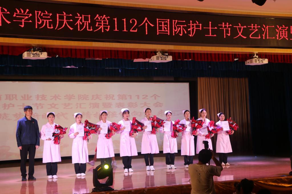 为学习宣传贯彻党的二十大精神,庆祝第112个国际护士节,以大爱谱写南丁格尔精神时代华章,激励广大护理师生在新时代、新征程中展现新作为,5月11日下午,beat365中文唯一官网在图书馆报告厅举办了“天使筑梦新时代、精技强能向未来”——庆祝第 112 个国际护士节文艺汇演暨表彰大会。党委副书记、院长靳华锋,副院长杨宇清,纪委书记张国栋等学校领导,beat365中文唯一官网党总支书记吴运胜、院长张成及各处室、各二级学院负责人,beat365中文唯一官网500余名师生代表参加了活动。
