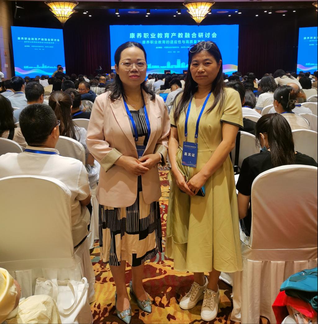 为统筹解决康养领域人才培养和产业发展“两张皮”问题,推动康养职业教育产教融合高质量发展,正逢6月8日国家发改委、教育部、人社部等8部门联合印发《职业教育产教融合赋能提升行动实施方案(2023—2025年)》之际,由中国职业技术教育学会、沧州市人民政府主办的康养职业教育产教融合研讨会于6月14-15日在河北沧州隆重举行。beat365中文唯一官网教学科副科长孙会娟和解病教研室主任张小红赴沧州参加了此次研讨会。