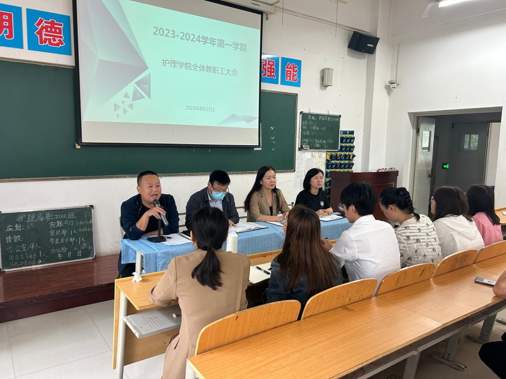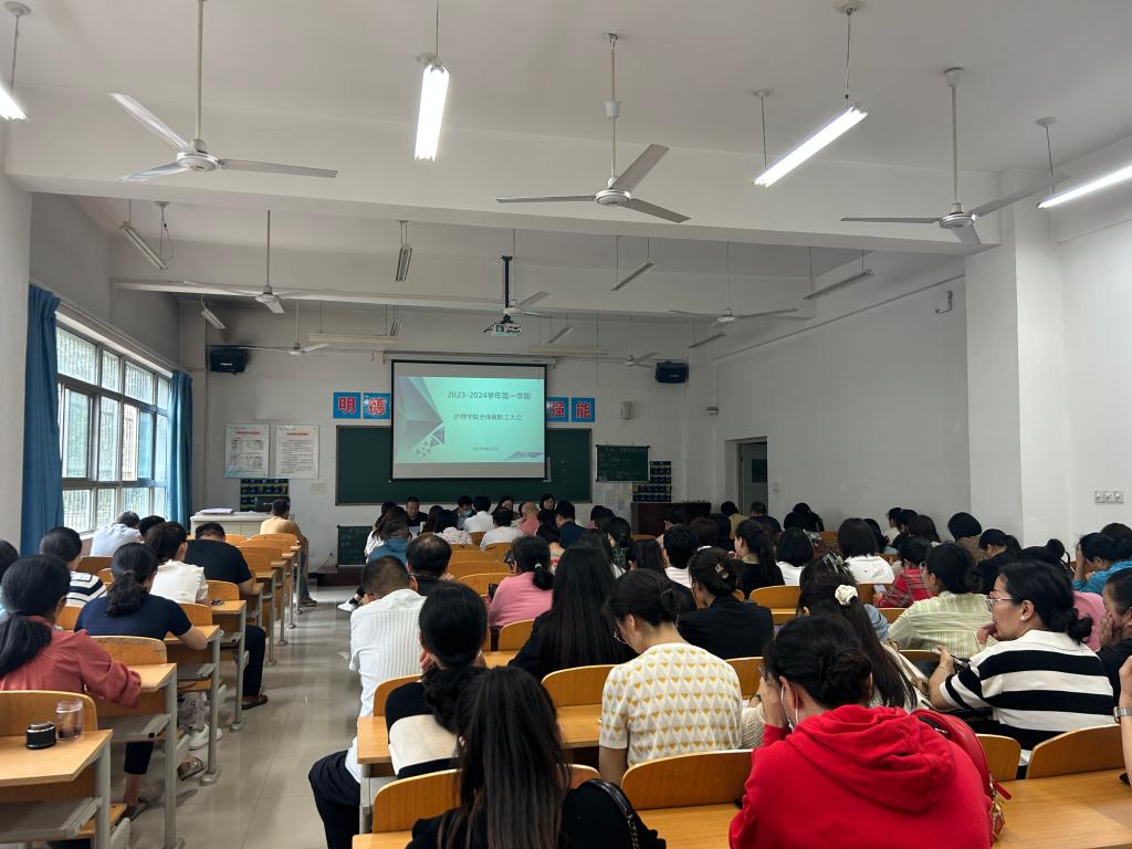 8月27日下午,beat365中文唯一官网在公南102教室召开新学期开学工作会议,安排部署新学期重点工作任务,明确了新学期教育教学工作目标和方向。会议由办公室主任王剑主持,全体教职工参加会议。