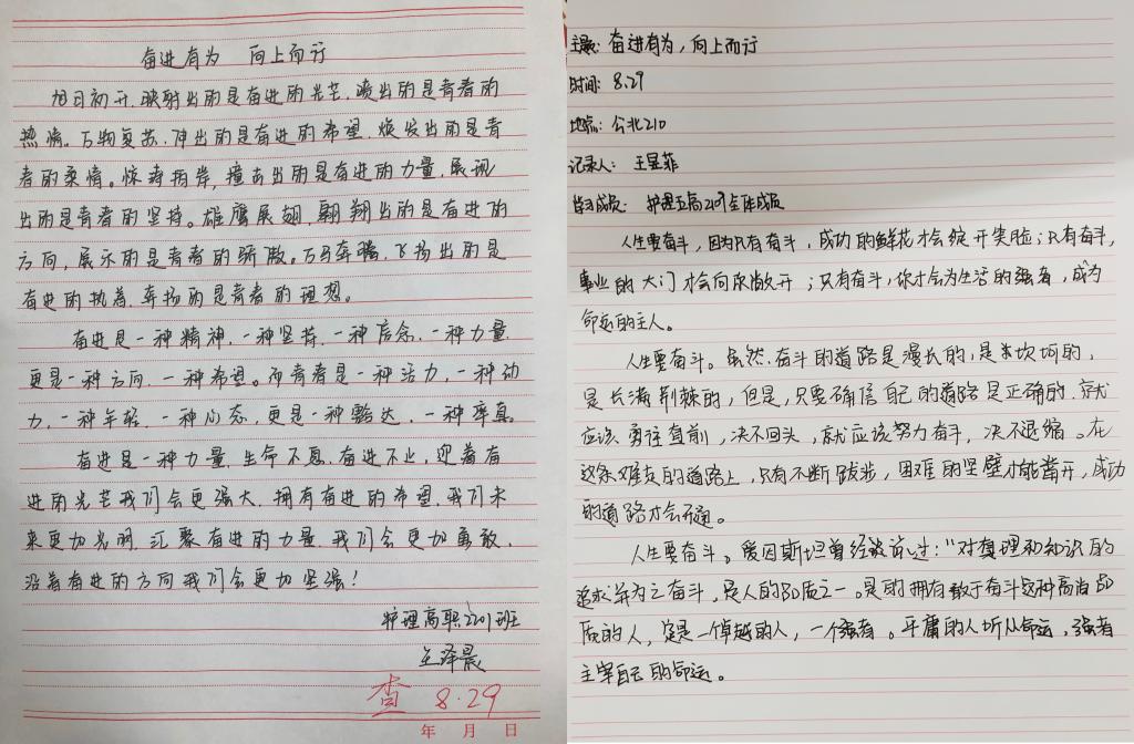 各班团支书组织大家学习校规校纪,强调安全管理制度,并向同学们讲解“奋进有为向上而行”PPT的相关内容,通过随机提问和相互交流,引导同学们制定新学期的目标与规划,将思想、心态切换到开学模式,以崭新面貌来迎接新学期,树立新学风。