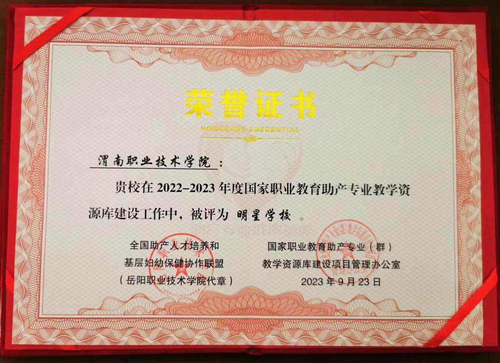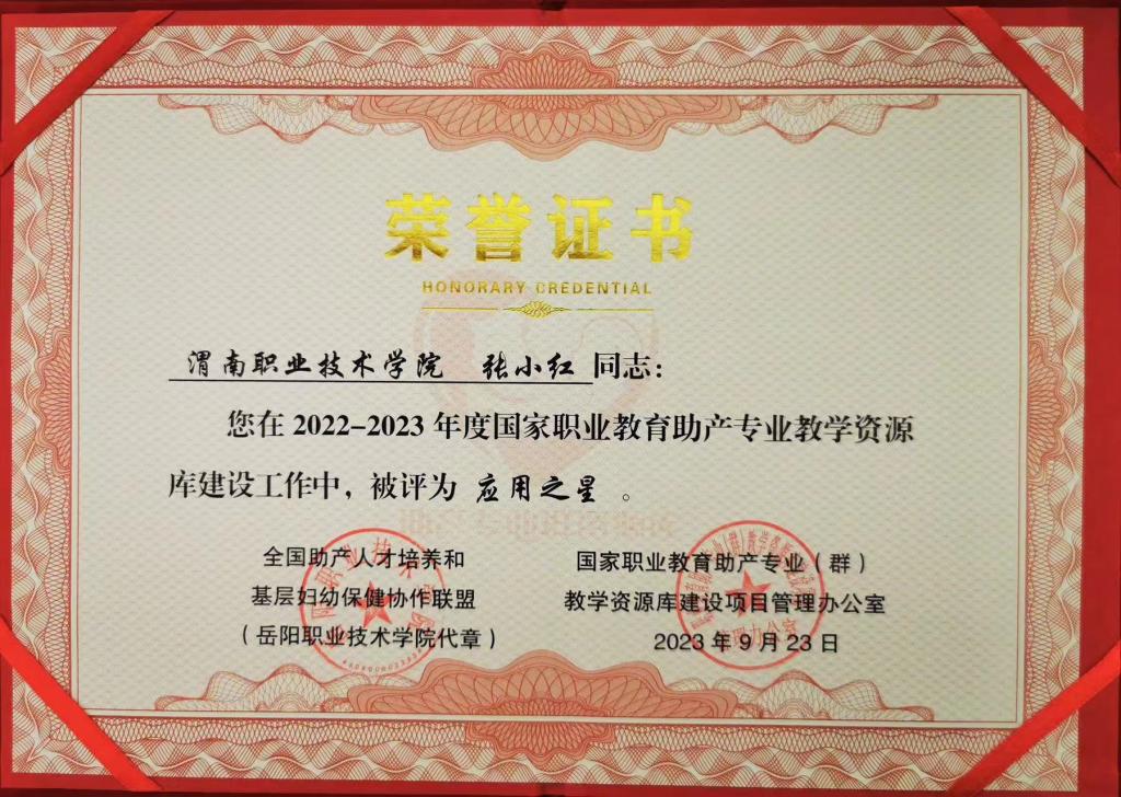 大会还对2022-2023年度国家职业教育助产专业教学资源库建设先进集体和个人进行了表彰,beat365被评为“明星学校”,beat365中文唯一官网张小红老师被评为“应用之星”。