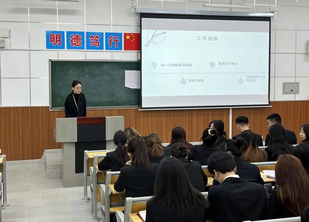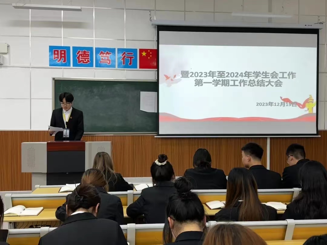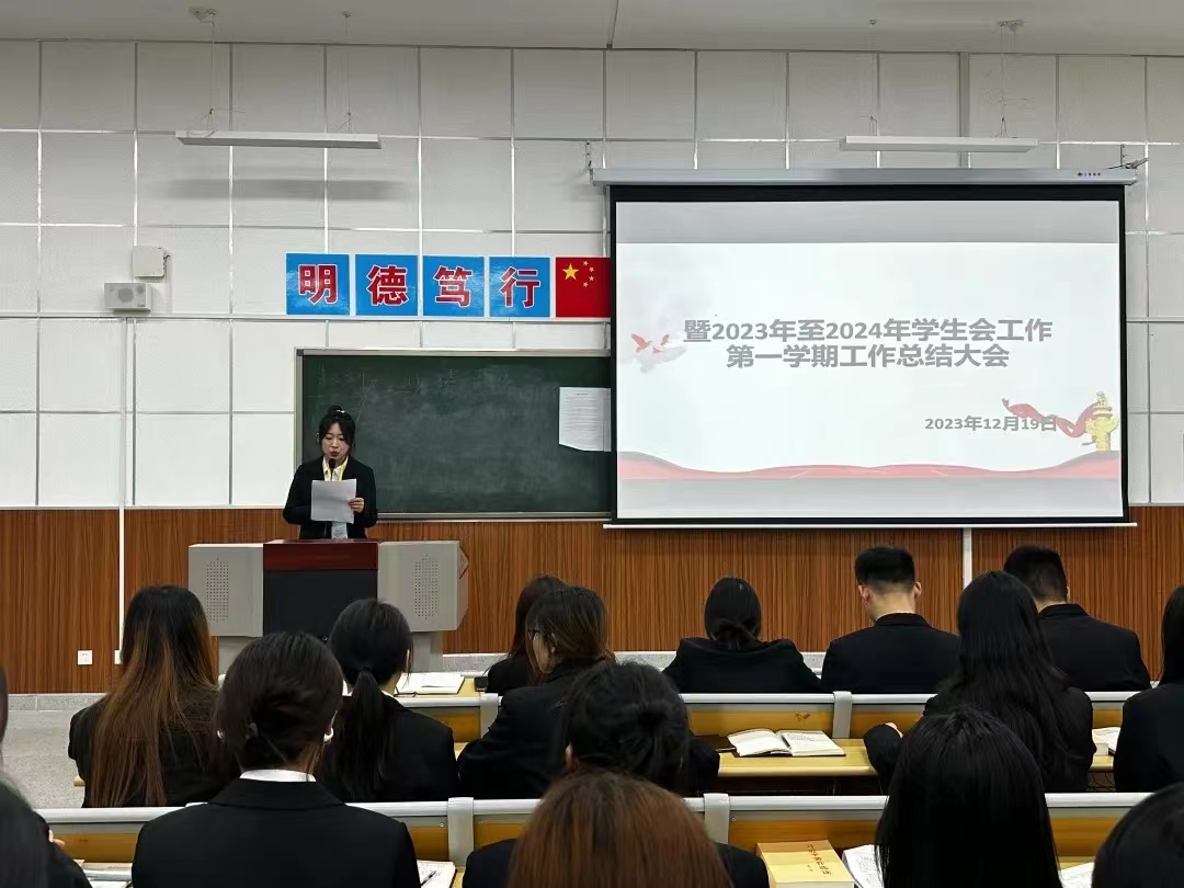 为回顾总结过去一学期学生会及相关部门的工作,深入剖析存在的问题,全面提升学生会工作能力,更好服务学生,beat365中文唯一官网于12月19日召开2023—2024届学生会第一学期工作总结大会。会议由主席团成员苏可心主持,beat365中文唯一官网全体学生会干部以及学生会代表参加。