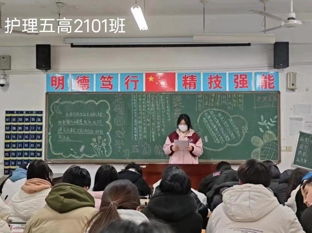 “困难是礁石,海水敢于进击才激起美丽的浪花”“挫折是成长的催化剂”,当代大学生在面对压力和曲折时,只有经过不断的自我思考、自我剖析,实现自身的成长和进步,才能开出自由、快乐之花。因此,本周心理课上心理委员从“压力的普遍性”“压力是我们调整状态的提醒器”“要提升动力应对压力”“压力太大要减压”“减压并不等同于零压力”等相关心理知识,并讲述了大学生缓解压力的方法,如积极参加学校组织的各项活动,保持乐观开朗、积极进取的良好心态等。同学们也纷纷表示,会正视自身的困境,有问题会通过有效途径寻求帮助,以健康向上的心理状态,积极应对生活和学业上的挫折与压力。