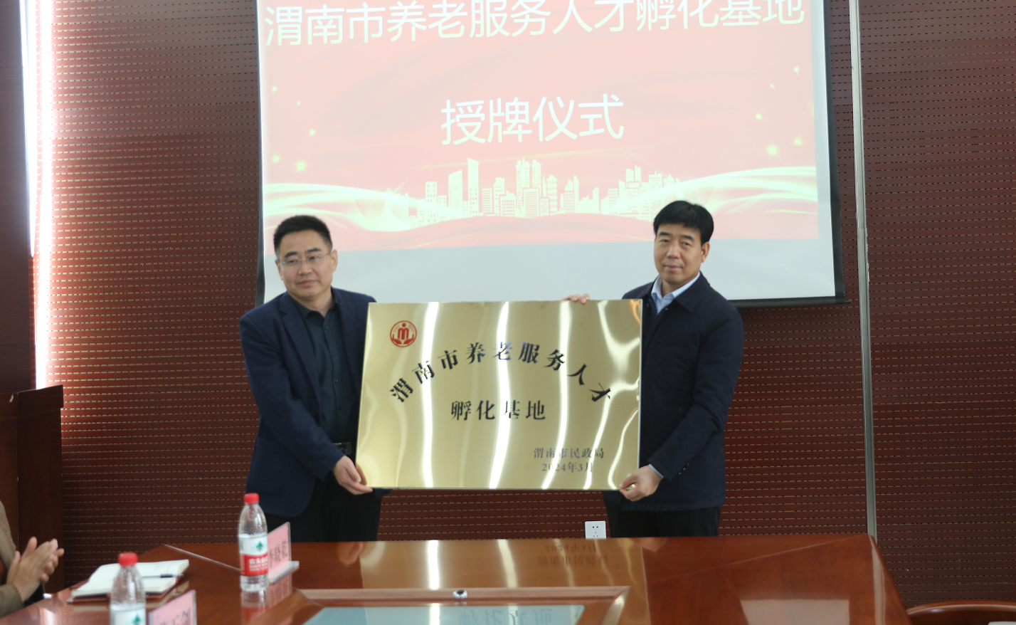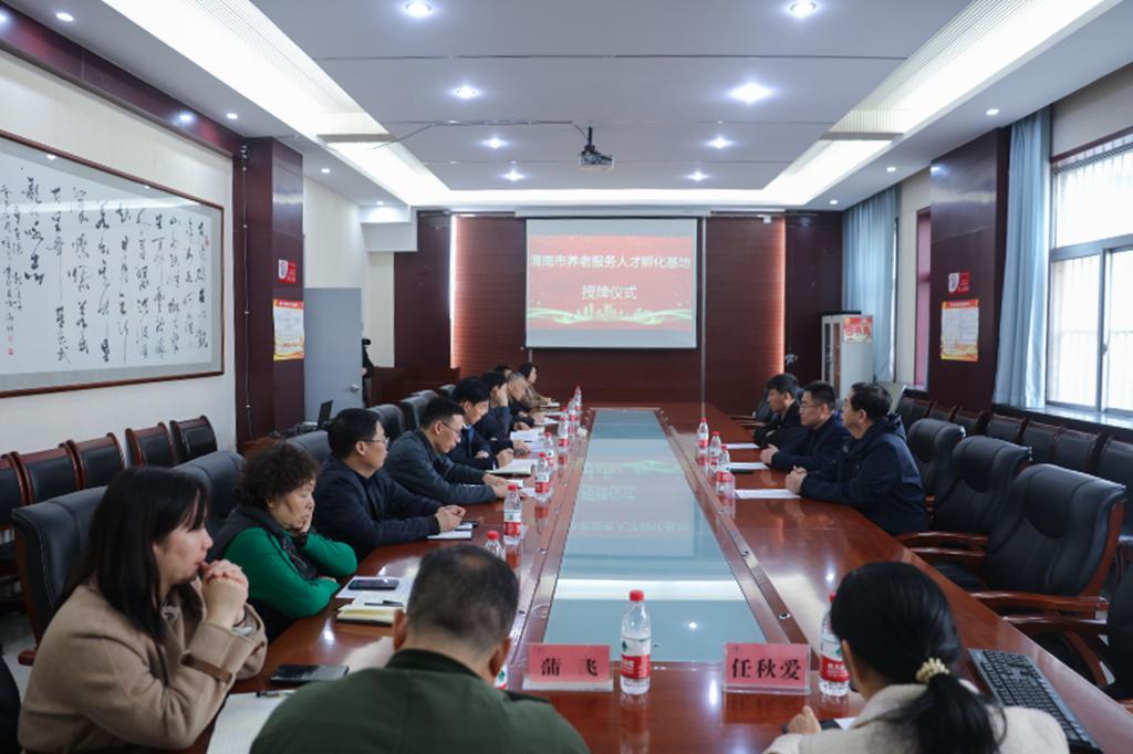 3月22日上午,“渭南市养老服务人才孵化基地”授牌仪式在beat365医训南楼第一会议室进行。学校党委副书记王录军,渭南市民政局四级调研员李锋、社会福利科科长杨志宏、科员杨凯及beat365医护两院负责同志,各相关部门负责人参加。会议由教务处魏恒处长主持。