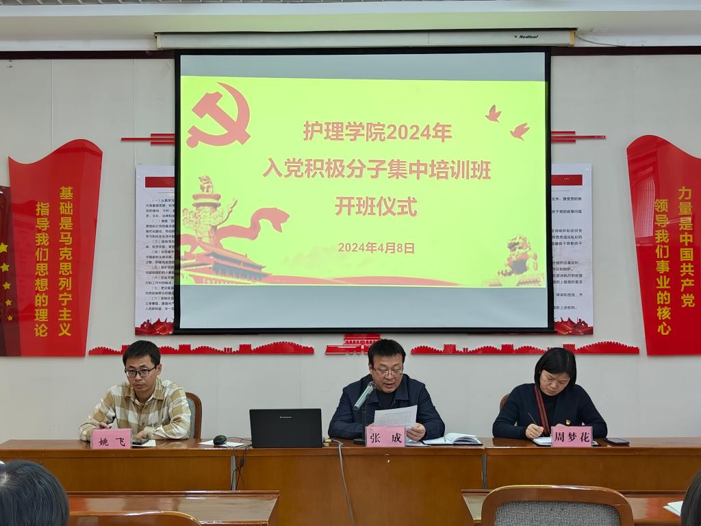 4月8日下午16:00,beat365中文唯一官网在医南第二会议室举行2024年入党积极分子培训班开班仪式。此次培训班旨在进一步加强入党积极分子的思想政治教育,提升他们的党性修养和组织纪律性。出席本次开班仪式的有beat365中文唯一官网院长张成、党总支副书记周梦花、学生党支部书记姚飞。会议由周梦花主持。