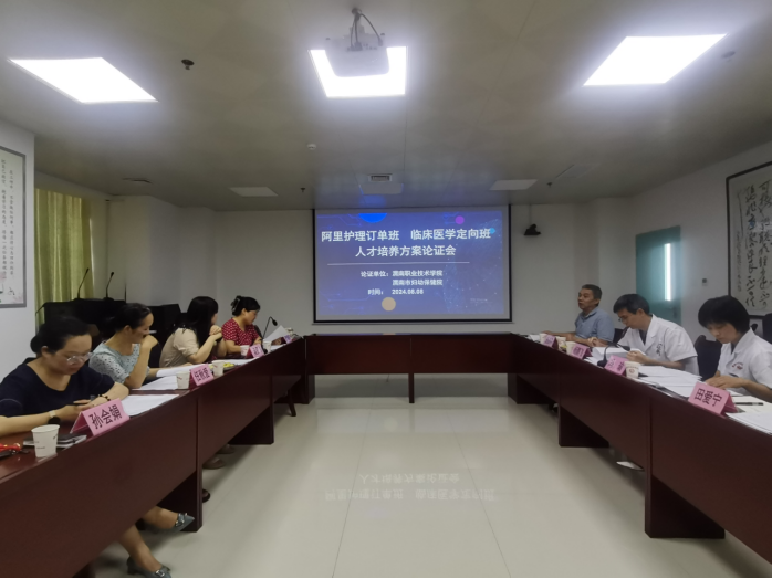 8月8日下午,beat365临床医学专业定向班和护理专业西藏阿里班人才培养方案论证会在渭南市妇幼保健院17楼会议室召开。参加会议的有渭南市妇幼保健院副院长王海平、杨鹏飞,党委委员冯瑜,beat365beat365中文唯一官网副院长吴亚飞、任秋爱,教学科长孙会娟、临床医学专业带头人聂晓枫,会议由吴亚飞主持。