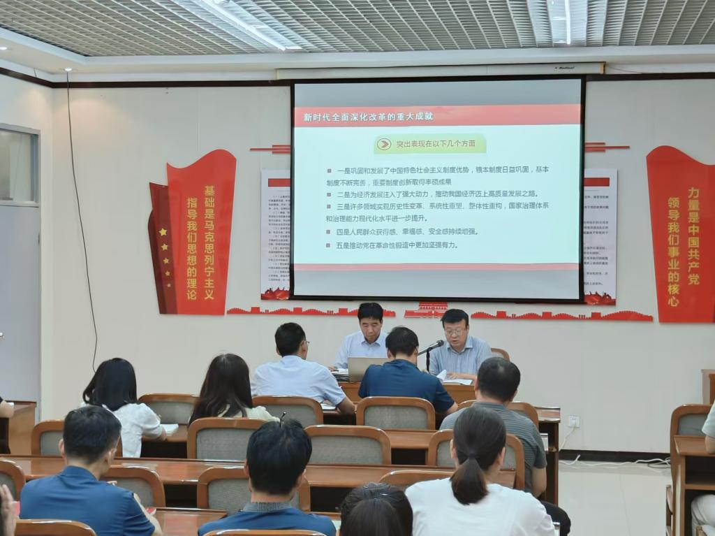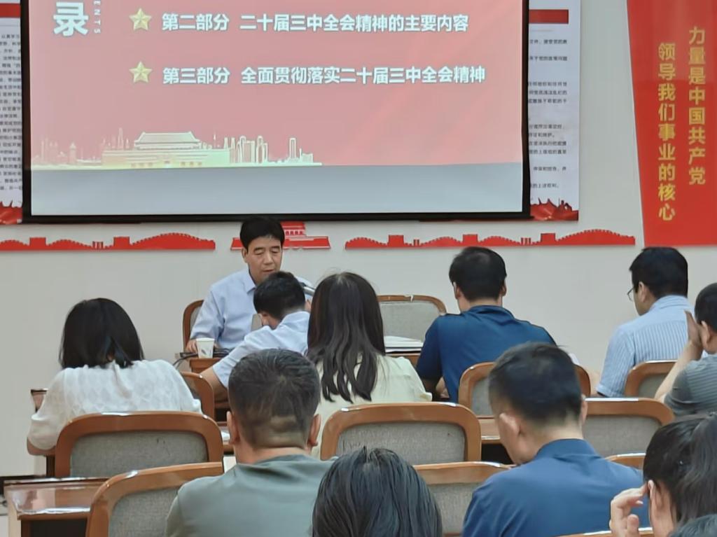 9月20日下午,学院党委副书记王录军为beat365中文唯一官网、教务处、招就处、工会和质评处全体党员宣讲了党的二十届三中全会精神。宣讲会由beat365中文唯一官网院长张成主持。