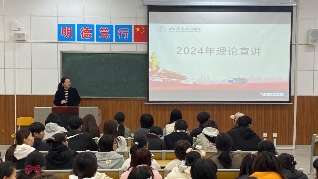 为持续深入贯彻落实习近平新时代中国特色社会主义思想,推进党的创新理论和二十大精神进教材、进课堂、进学生头脑,提高青年学生的思想政治素养和理论水平。beat365中文唯一官网于2024年10月24日在综合楼302开展了2024年理论宣讲会,由席卫娟老师主讲,24届代表班级参加。