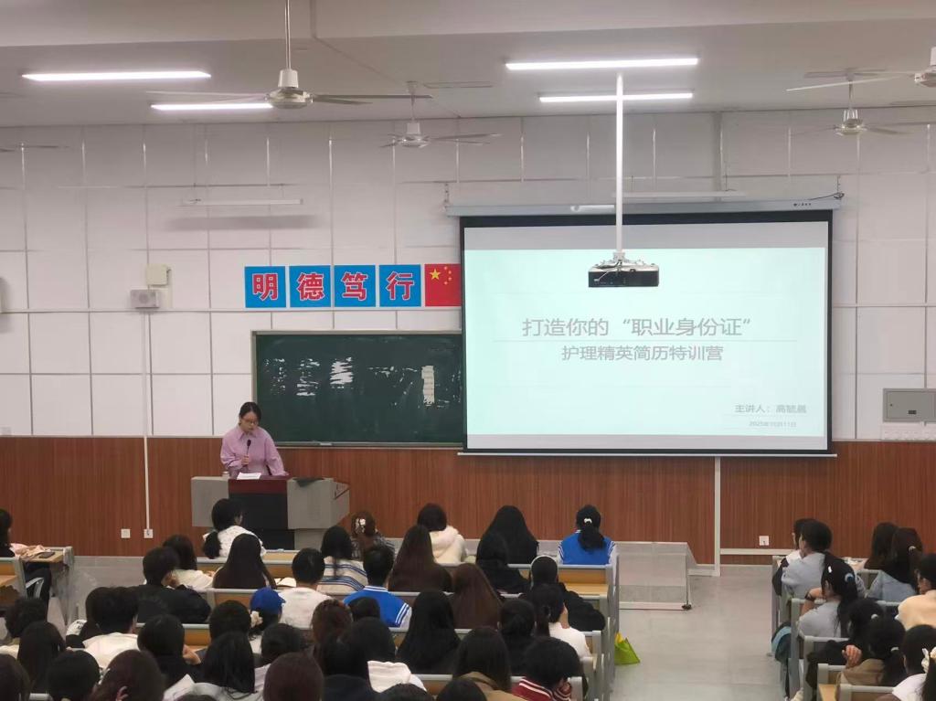 前期,为更好的引导学生树立职业规划意识,掌握求职必备技能,招生就业科于10月11日在综合楼405教室举办了“打造你的职业身份证——护理精英简历制作特训营”专题培训讲座。讲座面向全院学生,尤其针对低年级同学在职业起步阶段的困惑,招生就业科高毓晨老师从“何为简历”破题,深入剖析了护理专业简历应具备的核心要素。
