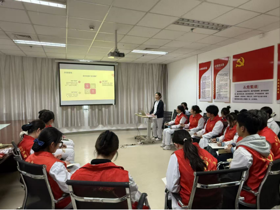 11月5日,校企合作聚焦智慧健康养老领域新兴的安宁疗护岗位需求,在渭南市中心医院老年病科开展“生命关怀・守护最后一公里”志愿者关怀活动。活动围绕岗位核心能力展开专项培训与实践:市中心医院老年病科护士屈英琦讲解中医适宜技术(艾灸、穴位按摩)在安宁疗护中的应用,契合智慧养老“传统照护+技术辅助”的发展趋势;刘婕结合临床案例开展生命教育,强化学生对安宁疗护岗位“心理支持、家属沟通”等职业素养的认知。