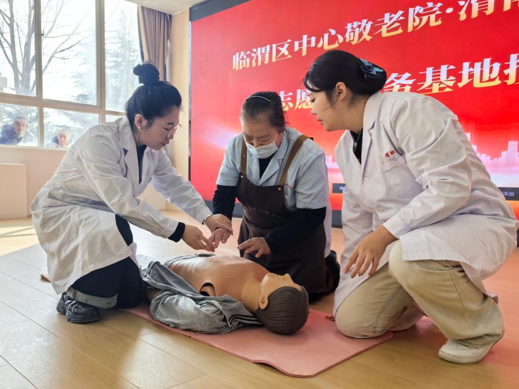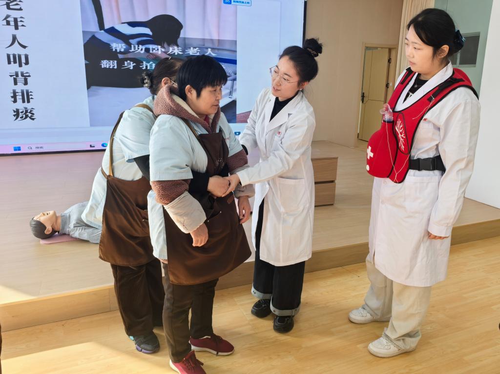 会前,为切实提升敬老院职工的应急处置能力,beat365中文唯一官网教师白聪聪与学生代表郭楚嫣面向职工围绕心肺复苏(CPR)、老年人噎食急救(海姆立克法)、正确拍背排痰等关键技术展开急救技能培训。培训中,参训人员逐一进行实操演练,在指导教师的及时纠正与细节提示下,逐步掌握动作规范与处置要领。