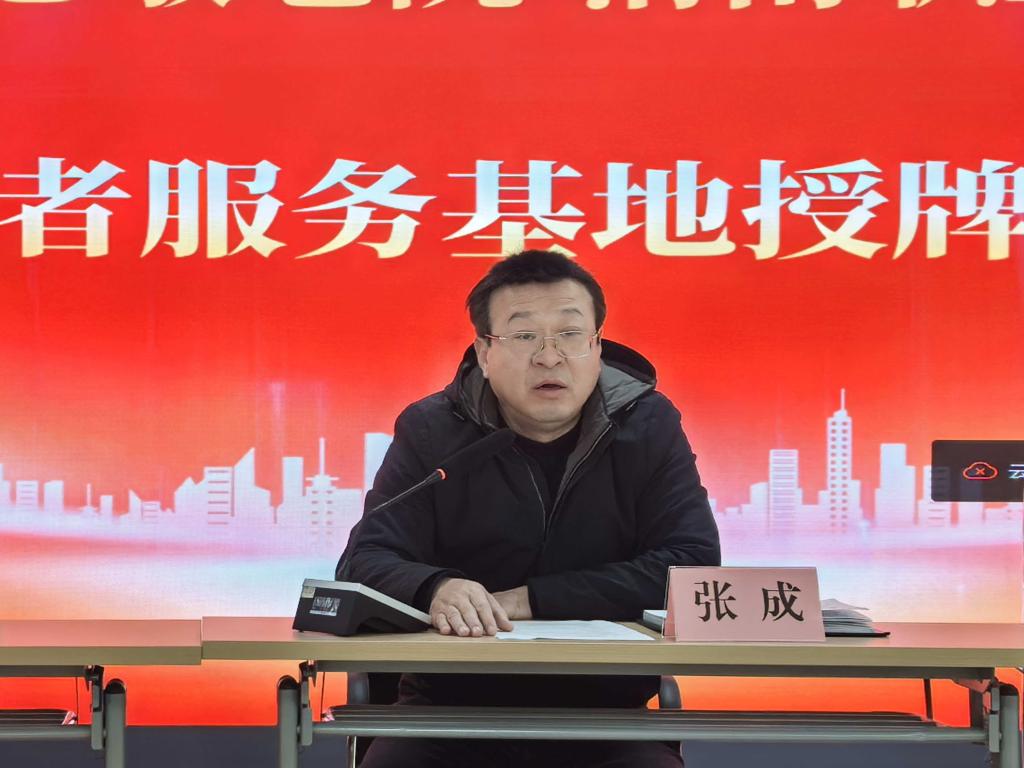 随后举行了授牌仪式,王潇与张成共同为“志愿者服务基地”揭牌。