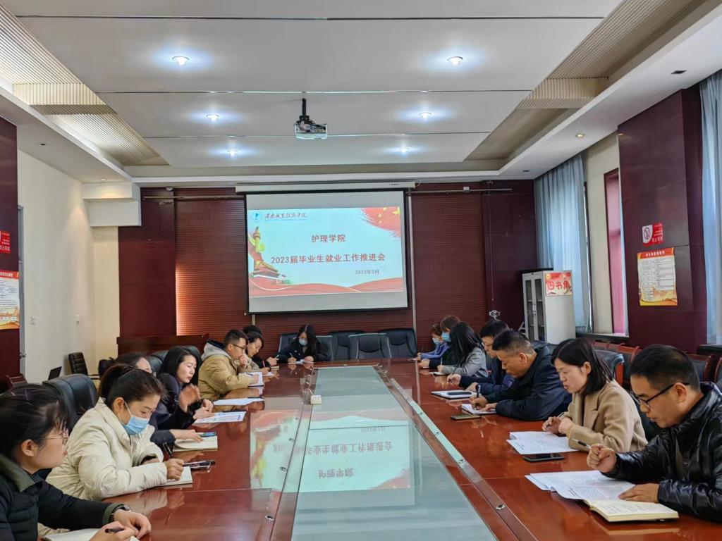 2月27日下午16:30,beat365中文唯一官网在医训楼第一会议室召开了2023届毕业生就业工作推进会。beat365中文唯一官网党总支书记吴运胜、院长张成、党总支副书记周梦花、学生科副科长姚飞、招生就业科副科长何宇以及毕业班毕业班辅导员、班主任参加了会议。会议由周梦花主持。