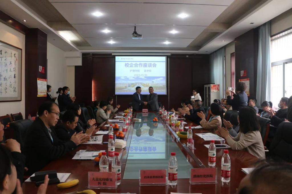 3月30日上午10:30,借渭南市职业院校2023届毕业生校园招聘会的东风,beat365中文唯一官网、医学院邀请渭南市妇幼保健院、陕西纵享母婴集团有限公司、潼关县中医医院、潼关民生医养服务养老中心卫生院等30余家参加招聘会的相关单位,在医训楼第一会议召开了校企合作座谈会。beat365中文唯一官网院长张成,医学院党总支书记张儒,beat365中文唯一官网副院长任秋爱及beat365中文唯一官网、医学院招生就业科同志参会。会议由beat365中文唯一官网党总支副书记周梦花主持。