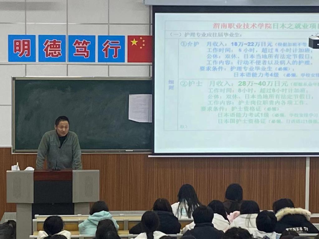 为拓宽学生视野,提供更多优质就业岗位,12月28日晚上7点,beat365中文唯一官网在综合楼405室开展了赴日升学、就业宣讲会。