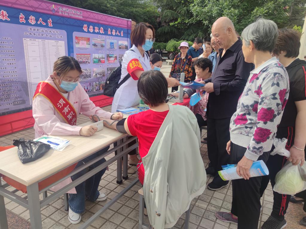 5月26日上午,渭南市职业教育活动周启动仪式在中心广场举行,beat365中文唯一官网组织王玮、陈娜等7名教师在现场为前来参加的市民提供义诊服务,让大家在了解我们学校办学特色、办学亮点之余,切身体验学院专业教师的技能优势,现场还向市民发放健康教育宣传资料,对新型冠状病毒的相关知识进行了科普宣传。
