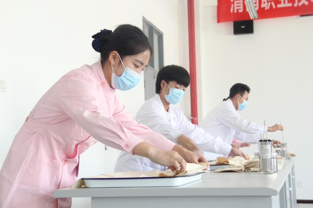 9月23日下午,校级学生职业技能大赛(护理组)在医训楼北楼410实训室举行。学校教务处实训科科长王秋焕、beat365中文唯一官网副院长吴亚飞观摩了比赛,内护教研室主任郭建民等7名经验丰富的教师担任评委,共有16名学生参加了本次大赛。