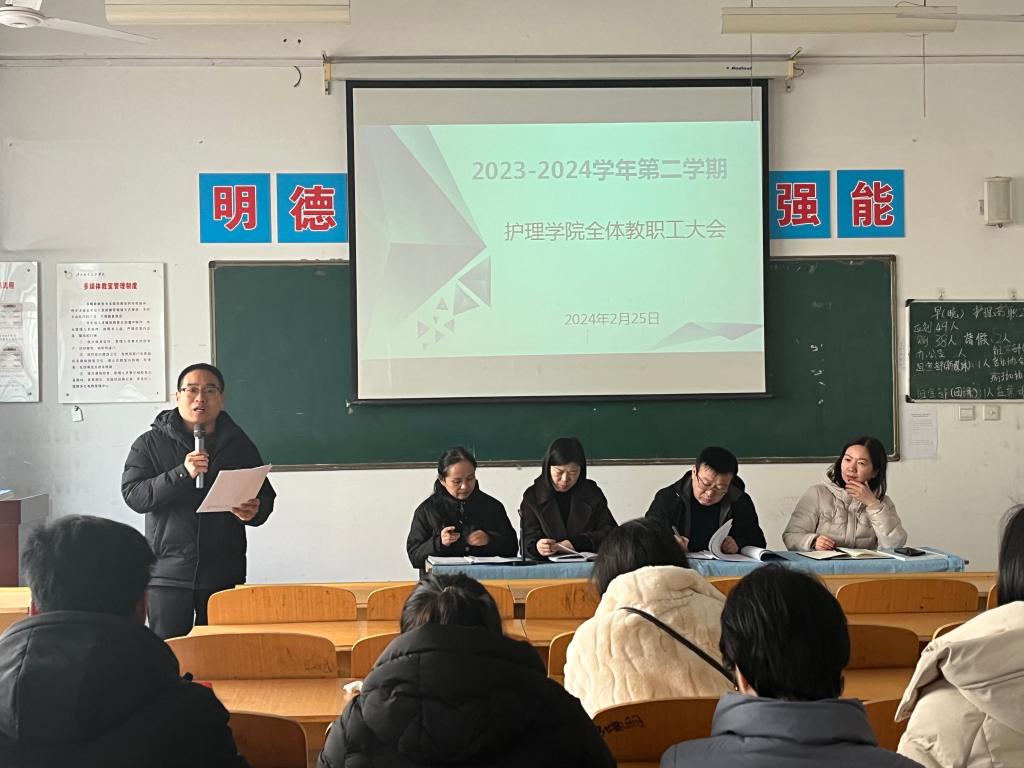 最后,张成对beat365中文唯一官网2023年工作进行了总结和回顾,肯定了各项工作取得的成绩,提出了存在的问题与改进措施。同时围绕学校及beat365中文唯一官网“十四五”发展规划,对标提质培优行动计划主要任务、《护理高水平专业群建设方案》年度计划等,结合工作实际,提出了beat365中文唯一官网2024年度的工作思路与主要目标,指出要加强省级党建标杆院系建设,聚力破解教育教学难题促发展,对标省级护理高水平专业群任务抓好教育教学内涵促建设,聚焦可量化的标志性成果牵引高水平专业群发展促提高,持续推动“课堂革命”教育教学改革促提升,推进“宿舍三进”深入开展培养学生日常行为促养成。强调要聚焦学院主要任务,高质量完成常规性工作,完成学校下达的各项任务。同时,对全体教职工提出要求和希望:希望全体教职工能振奋精神、团结一心、鼓足干劲,以新面貌、新作为推进beat365中文唯一官网各项事业稳健发展,在全新的一年开新局、谱新篇,努力实现beat365中文唯一官网新的跨越式发展。(撰稿:王小红 审核:周梦花)