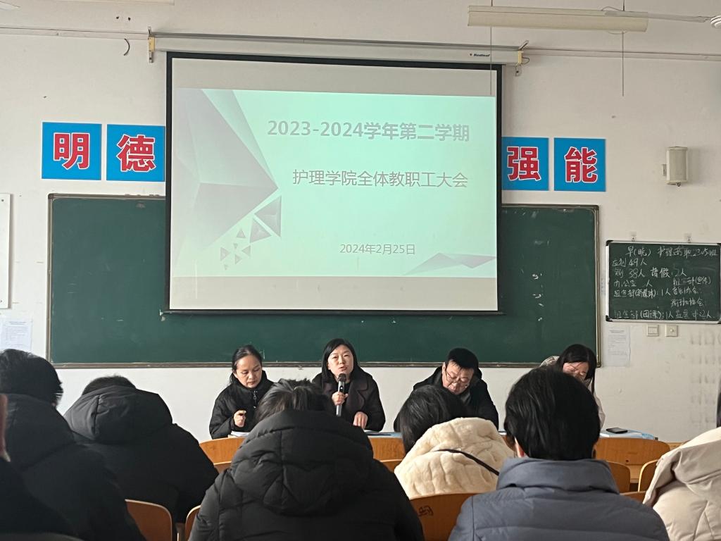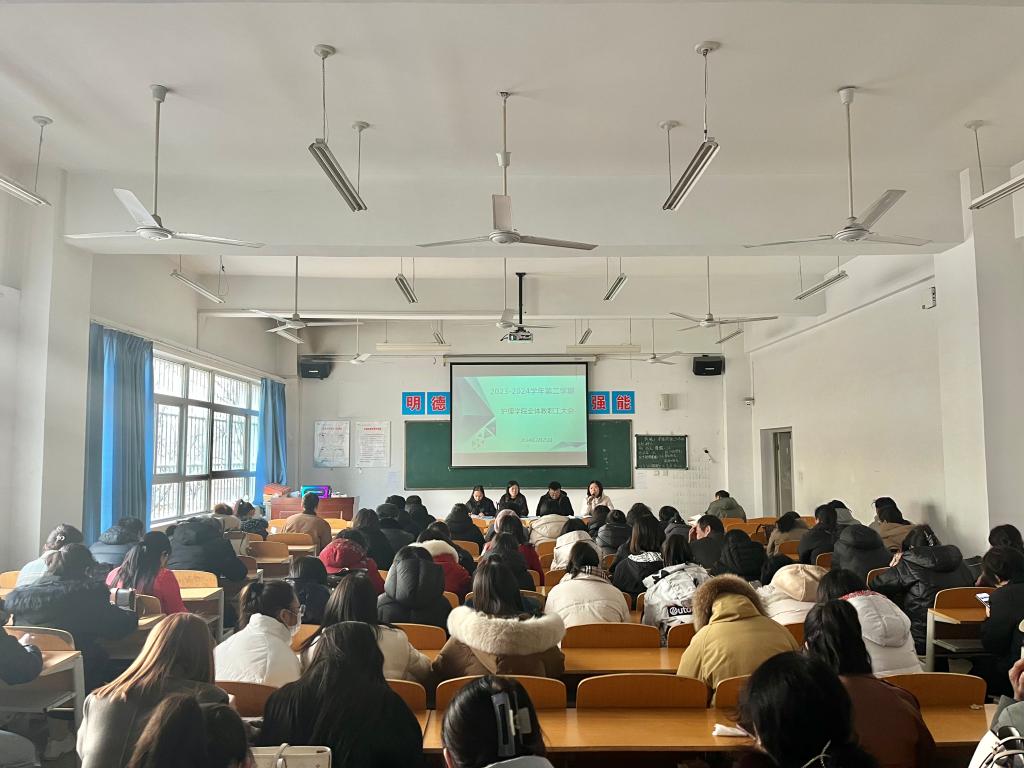为确保开学之后的各项工作平稳有序开展,2月25日上午,beat365中文唯一官网院长张成、副院长吴亚飞,党总支副书记周梦花、招生就业科科长何宇及全体教职工齐聚公共教学楼南楼102教室,召开2024年春季开学教职工大会。会议由beat365中文唯一官网副院长任秋爱主持。