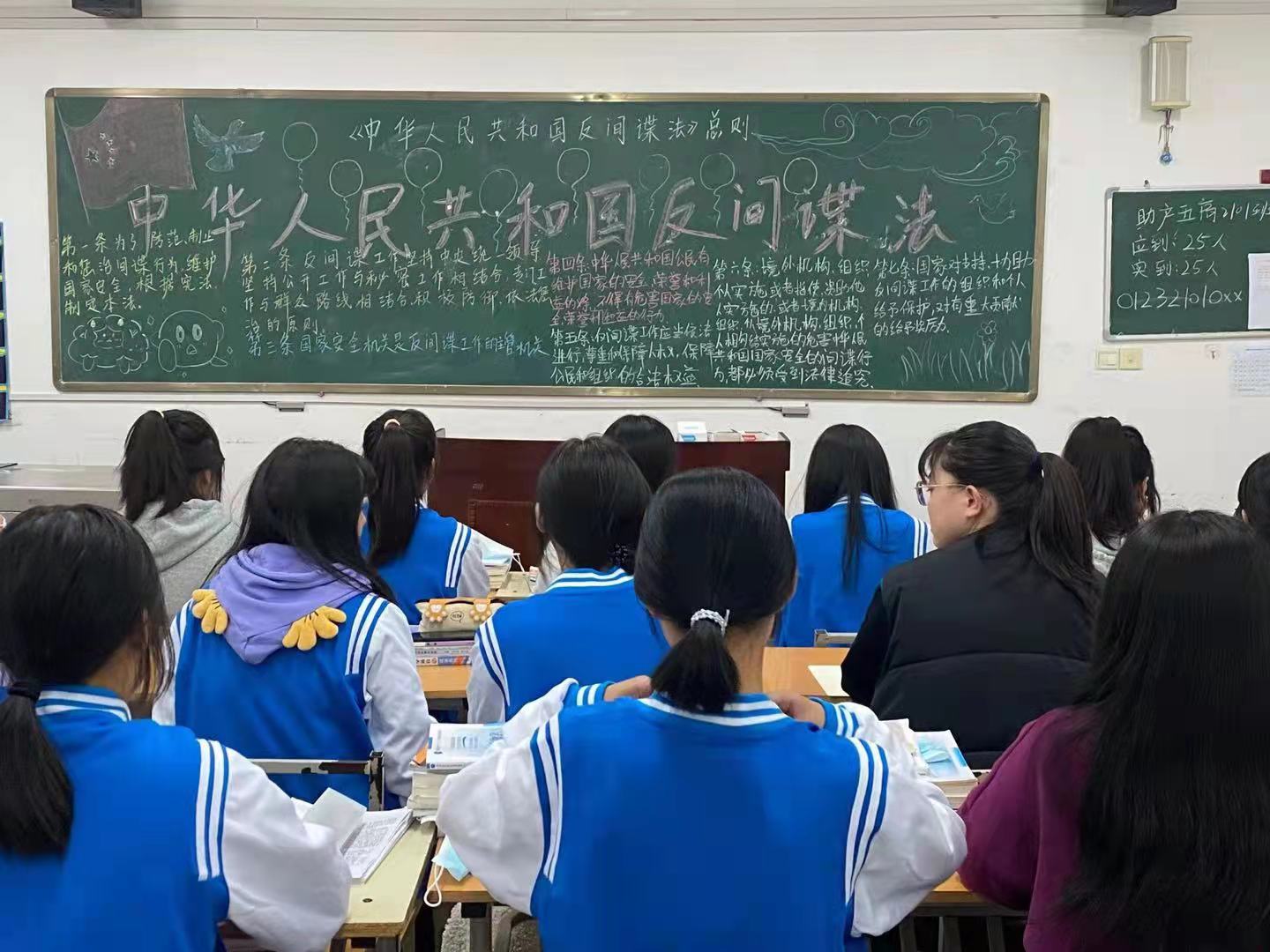 团课由各班团支部书记主持。各班级悬挂团旗,齐戴团徽,共唱团歌,在严肃而热烈的氛围中开展《中华人民共和国反间谍法》的学习。各班团支书结合当下国际形势和中国近代革命斗争史,为学生上团课,宣扬了爱国主义的伟大精神,强调了反间谍斗争的必要性和维护国家安全、荣誉、利益的重要性。向同学们介绍了危害国家安全的非法间谍活动,并通过知识抢答游戏加深同学们对《中华人民共和国反间谍法》的学习效果。同学们纷纷表示要增强国家安全意识,提高政治敏锐性和警惕性,履行好保守国家秘密,维护国家安全的责任和义务。