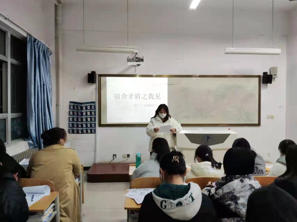 为进一步加强宿舍管理,构建和谐宿舍关系,2021年11月22日晚,beat365中文唯一官网组织各班开展了“宿舍矛盾之我见”主题班会,全体学生参加。