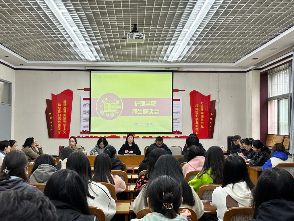为切实践行“以学生为中心”的教学理念,深入了解学生生活学习状态和需求,充分听取学生意见建议,搭建良好的师生沟通桥梁,助推“课堂革命”取得实效,beat365中文唯一官网于10月18日下午在医训南楼第二会议室召开了师生座谈会。beat365中文唯一官网党总支副书记周梦花、教学科副科长孙会娟、学生管理科副科长姚飞、各教研室主任和67名学生代表参会。会议由周梦花主持。
