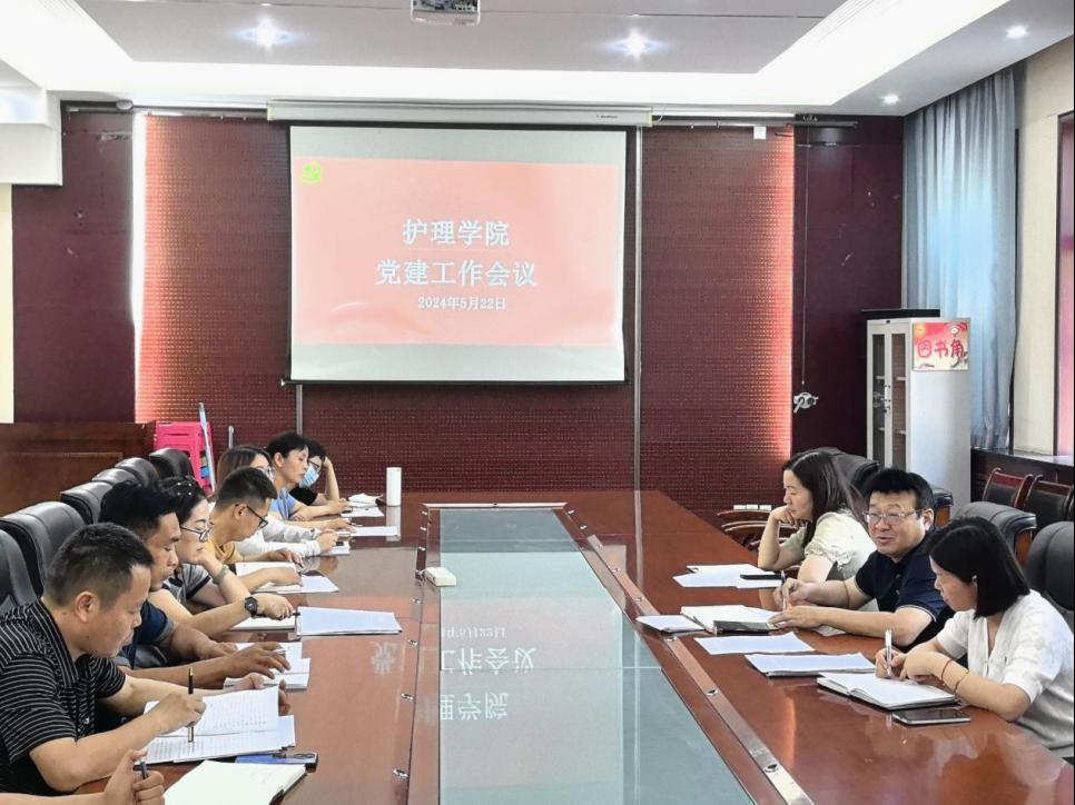 5月22日下午,beat365中文唯一官网在医训楼第一会议室召开党建工作会议,beat365中文唯一官网院长张成、副院长吴亚飞、党总支副书记周梦花、党总支委员、教学党支部和学生党支部全体委员参加。
