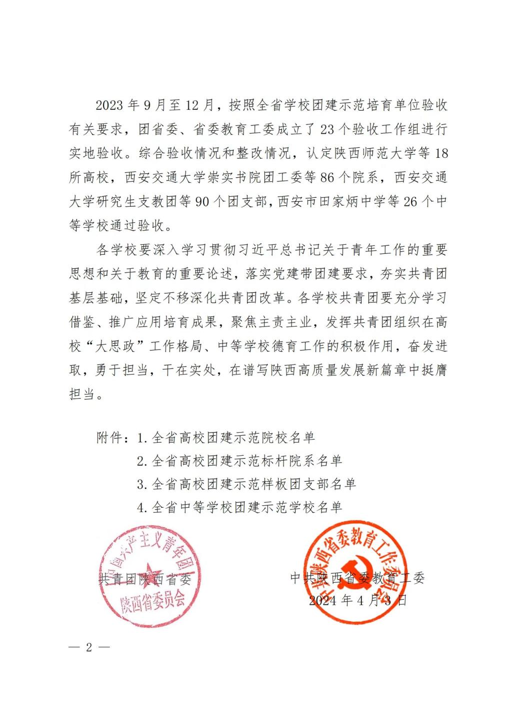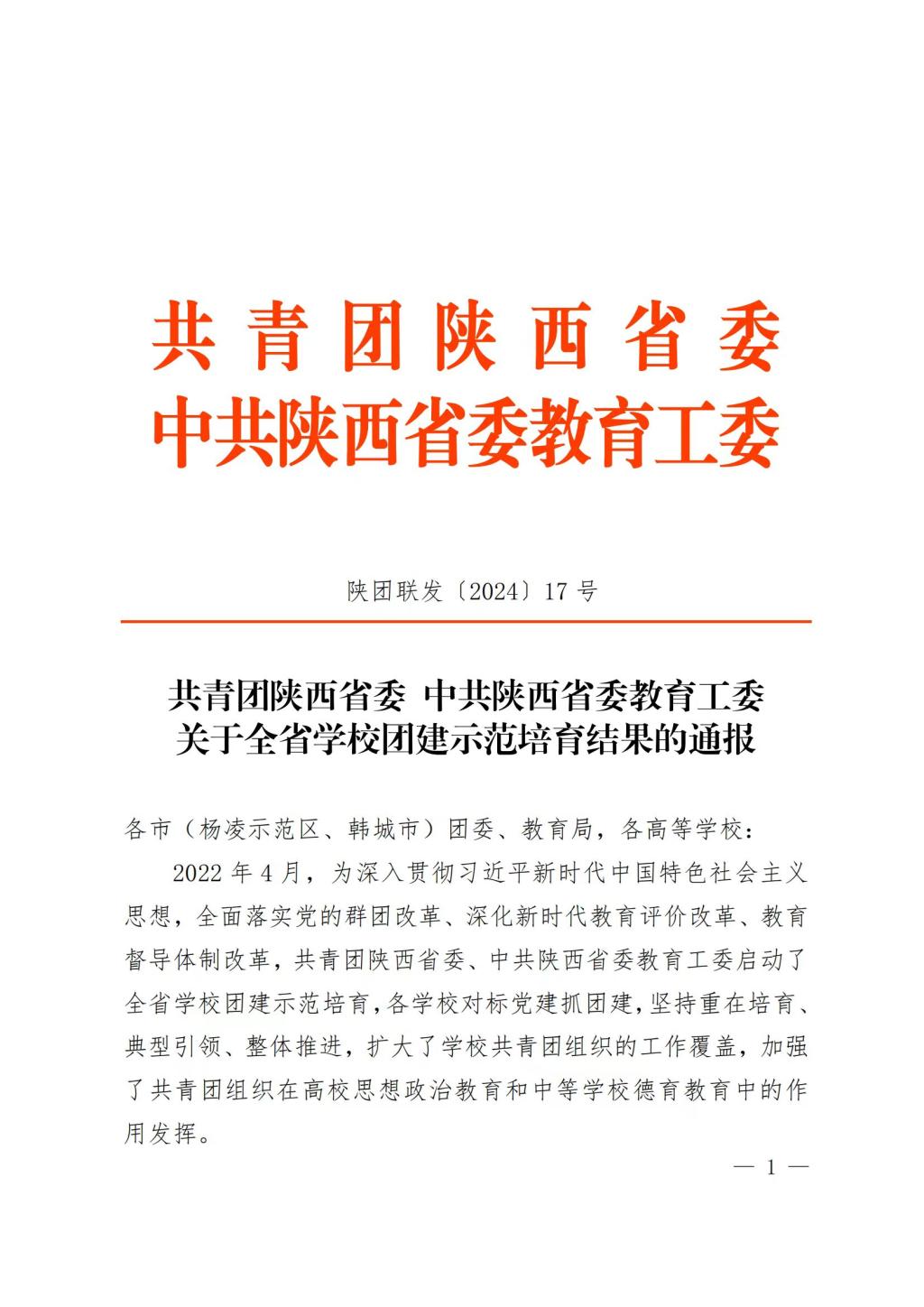 近日,共青团陕西省委、中共陕西省委教育工委联合印发了《关于全省学校团建示范单位培育结果的通报》,beat365中文唯一官网团总支被确定为“全省高校团建标杆院系”,并授予荣誉奖牌。