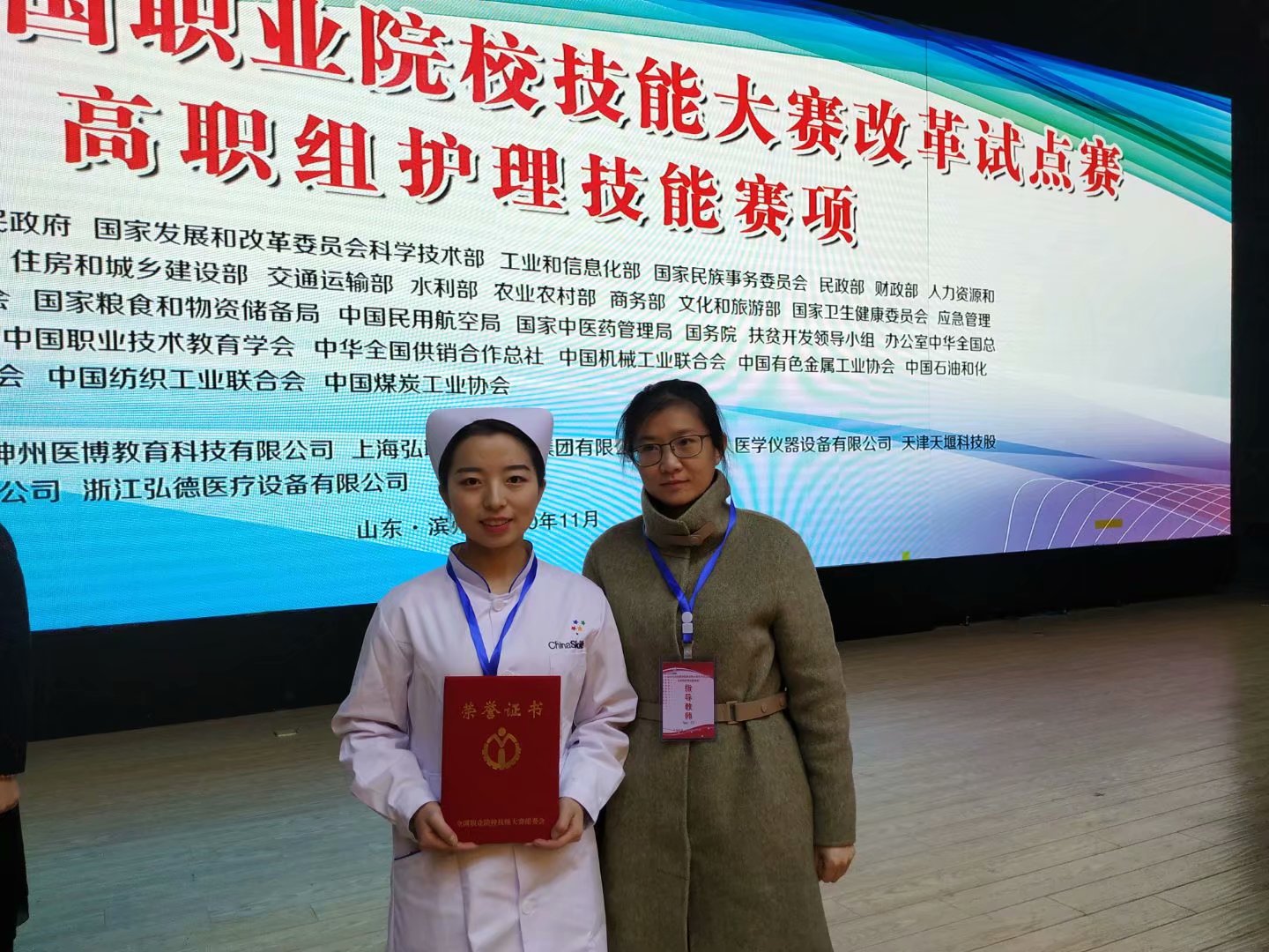 11月28日,2020年全国职业院校技能大赛改革试点赛高职组护理技能赛项在滨州职业学院落下帷幕。来自全国各省、市、自治区、计划单列市和新疆生产建设兵团的31支代表队,共31名选手同台竞技,切磋护理技能、展示专业风采。经过激烈角逐,共产生一等奖三项,二等奖六项,三等奖九项。beat365中文唯一官网杨嘉盈同学代表陕西省参赛,经过顽强拼搏,荣获三等奖。