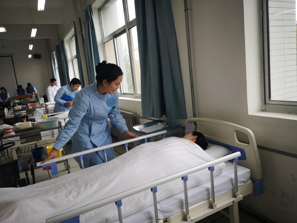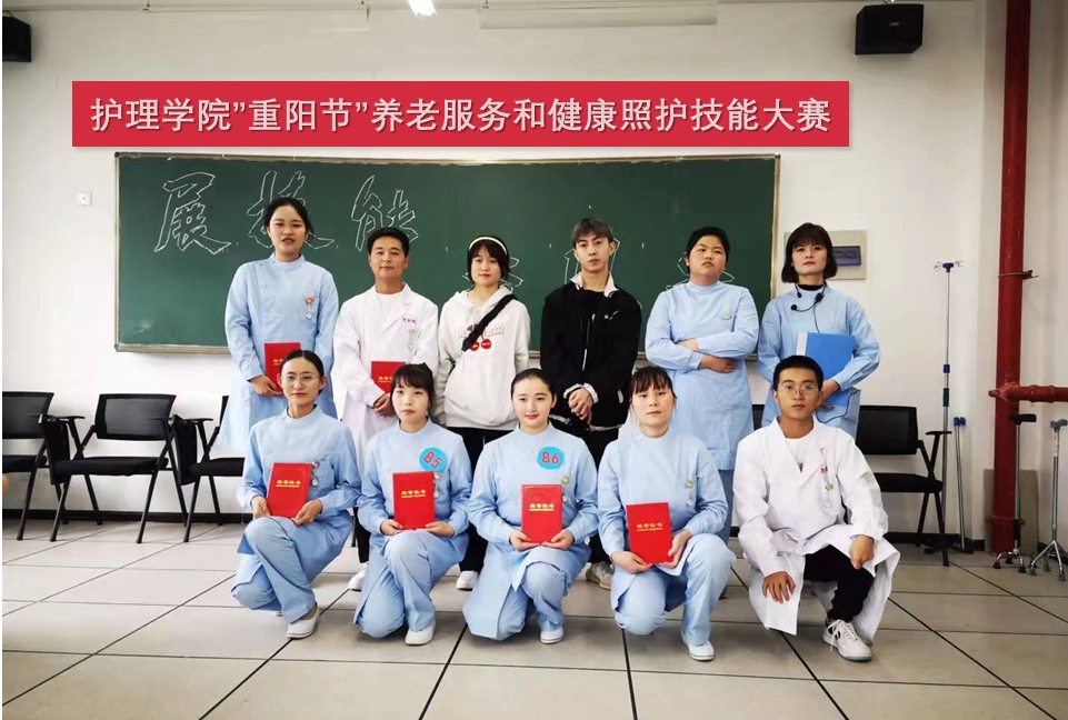 为弘扬尊老、敬老、孝老、爱老的优秀传统美德,按照《关于开展2021年技能大赛月活动的通知》(渭职院办发【2021】138号)精神,beat365中文唯一官网2021年重阳节在医训楼北楼3楼举行了2021年校级养老服务和健康照护技能大赛。beat365教务处王秋焕老师,beat365中文唯一官网党总支书记吴运胜、院长张成、副院长吴亚飞、教学科长王媛、教学科副科长孙会娟出席了比赛,任秋爱等5名教师担任大赛评委,无课教师观摩了比赛。