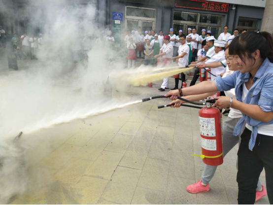 培训演练过程中,结合典型火灾案例,用通俗易懂的语言向接受培训人员讲解了火灾的发生及危害,日常工作中如何去检查和整改火灾隐患,如何组织人员扑救初期火灾,火场中如何逃生自救等知识。同时,还重点介绍了营业性场所火灾事故的主要特征、后厨火灾防范的特点、员工的消防安全教育等内容。