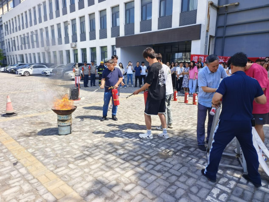 逃生演练结束后,保卫处工作人员围绕师生常见的消防安全问题,有针对性的向大家讲解了消防安全需要注意的事项及校园生活中需要关注的火灾风险等,通过讲解典型案例,使师生加强消防安全的认知。持续开展了消防安全隐患防范和消防安全 “四个能力”提升教育培训,并就如何火场逃生自救、初期灭火方法和灭火毯、灭火器、消火栓等简易消防器材的使用方法进行了重点讲解和演示。