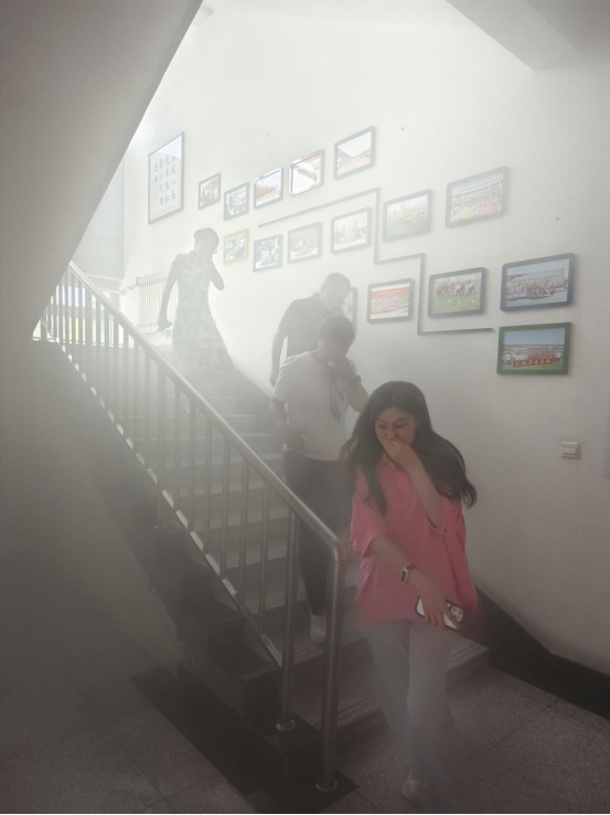 2024年6月5日,保卫处会同人文与管理学院开展了“增强师生安全意识、提升自救互救能力”消防安全培训及逃生演练,组织人员通过在楼层预设的着火点释放烟雾弹并触发火灾报警装置,听到警报臻善楼全体师生迅速、安全有序地向就近消防楼梯和楼外撤离。