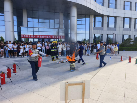 疏散演练结束后,保卫处工作人员带领消防应急分队给师生细致讲解逃生、报警等常见的消防安全问题,有针对性的了解消防安全需要注意的事项及校园生活中需要关注的火灾风险等,通过讲解典型案例,使师生加强消防安全的认知。持续开展了消防安全隐患防范和消防安全 “四个能力”提升教育培训,并就如何火场逃生自救、初期灭火方法和灭火毯、灭火器、消火栓等简易消防器材的使用方法进行了重点讲解和演示。
