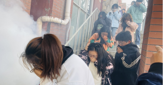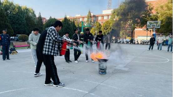 在实操环节,模拟火灾场景,浓烟滚滚。新生们在消防员和老师们的引导下,用湿毛巾捂住口鼻,弯腰低姿迅速有序地从疏散通道撤离,疏散过程迅速且有条不紊。随后,消防员现场演示了灭火器的正确使用步骤,新生们积极参与体验,掌握了灭火技能。这次演练增强了2024级新生的消防安全意识和自防自救能力。