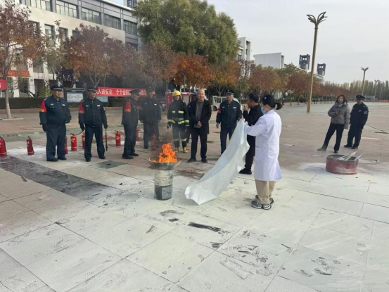 应急演练后,学校保卫处消防科杨俊康老师结合校园常见消防安全隐患,讲解了火场逃生自救技巧、防护装备规范穿戴、初期火灾扑救方法,现场演示了干粉、水基、二氧化碳灭火器“提、拔、握、压”操作以及灭火器、消火栓等消防器材的使用,师生分组参与模拟灭火,强化实操能力。