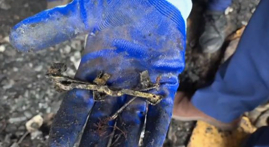 墟插线板被烧得只剩下铜片,调查员清洗后,发现上面有两个小洞,明显不是正常极片上应有的。