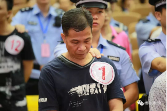 广西梧州“黑老大”张树辉在法庭受审。(图:梧州中院微信公众号)