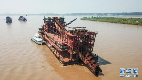 荆州警方查获涉黑团伙巨资购买的“采砂航母”华龙号。(图:新华社)